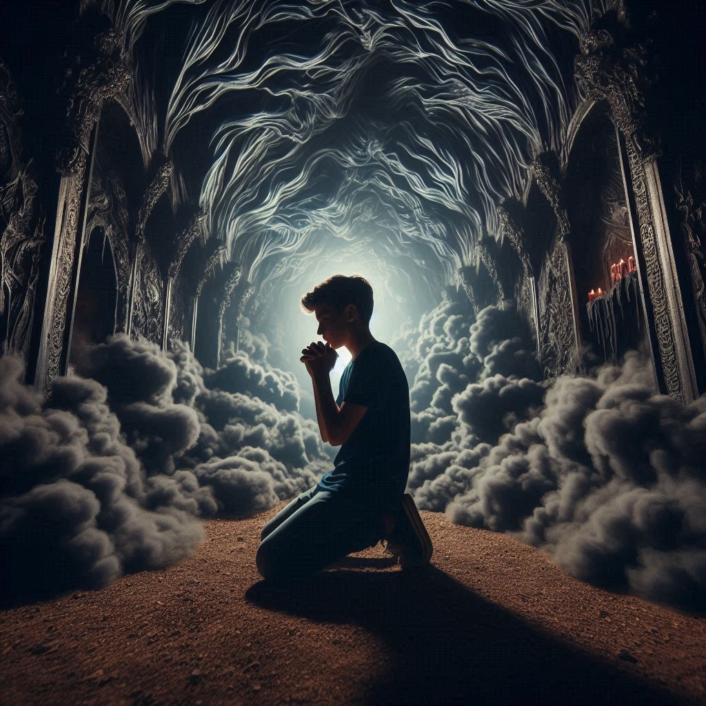 Apkallu stood from his throne and let his full weight fall with each footstep as he descended the steps toward where the boy stood at the altar. This shadow creature was large, at least as tall as the ceiling in their house. Cole squirmed, shifted his weight as he stood, and wrung his hands together. He didn’t dare speak but he thought to himself, “Please God make this end. All of it.”