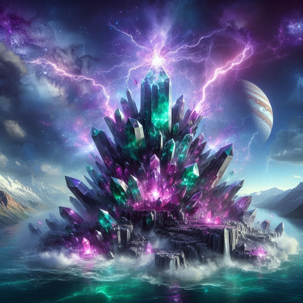 Erets continued to split and Tannigath was laid wide open. The mountain, filled with green and purple prisms, exploded from the rock like a suffocating diver gasping a breath of fresh air as he comes to the surface. The mountain settled with a peaceful exhale, the first breath of its victorious birth.